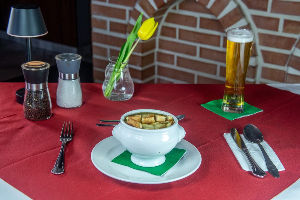 italienische Käsesuppe, mit Ei und gratiniertem Käsetoast