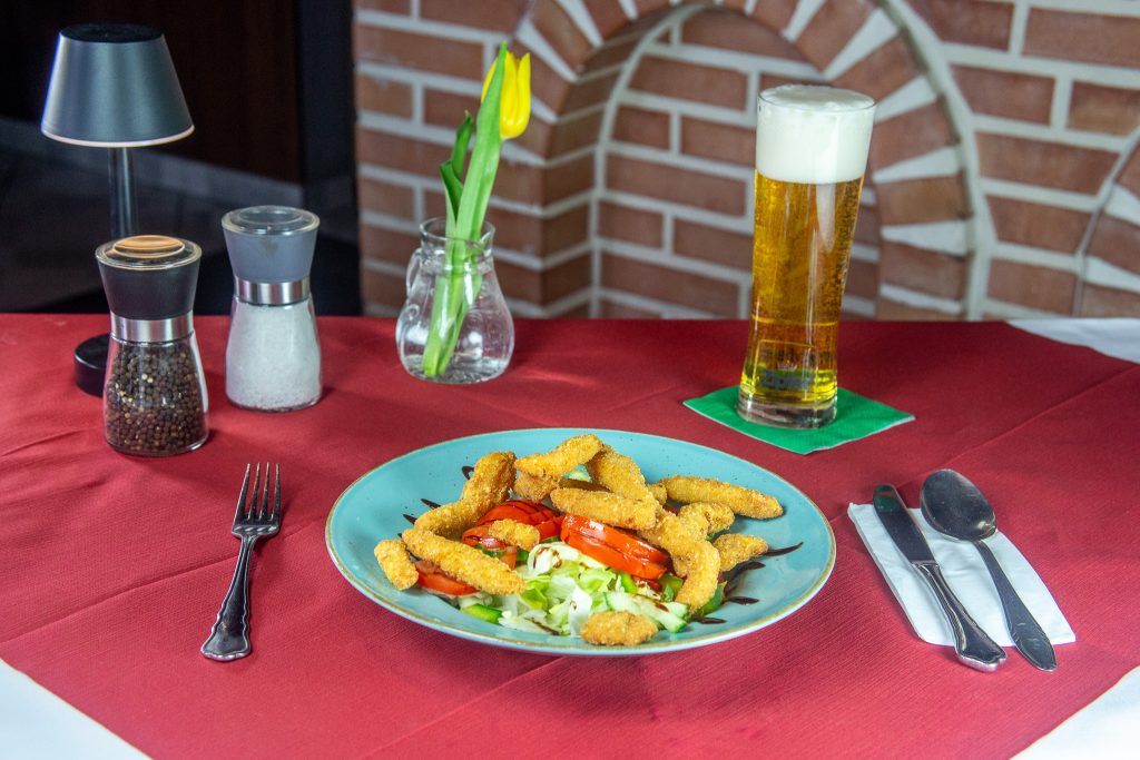 Backhendlstreifen auf gemischtem Salat ( A, C )